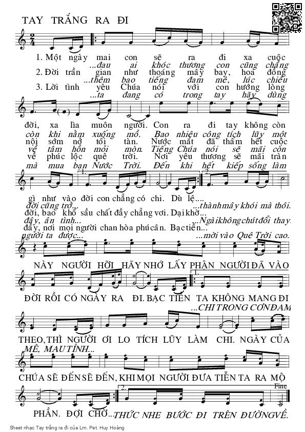 Lm. Pet. Huy Hoàng Một ngày mai con sẽ ra đi xa cuộc đời xa lìa muôn người [PDF] [Sheet] [Lyrics] [Mp4/Midi]