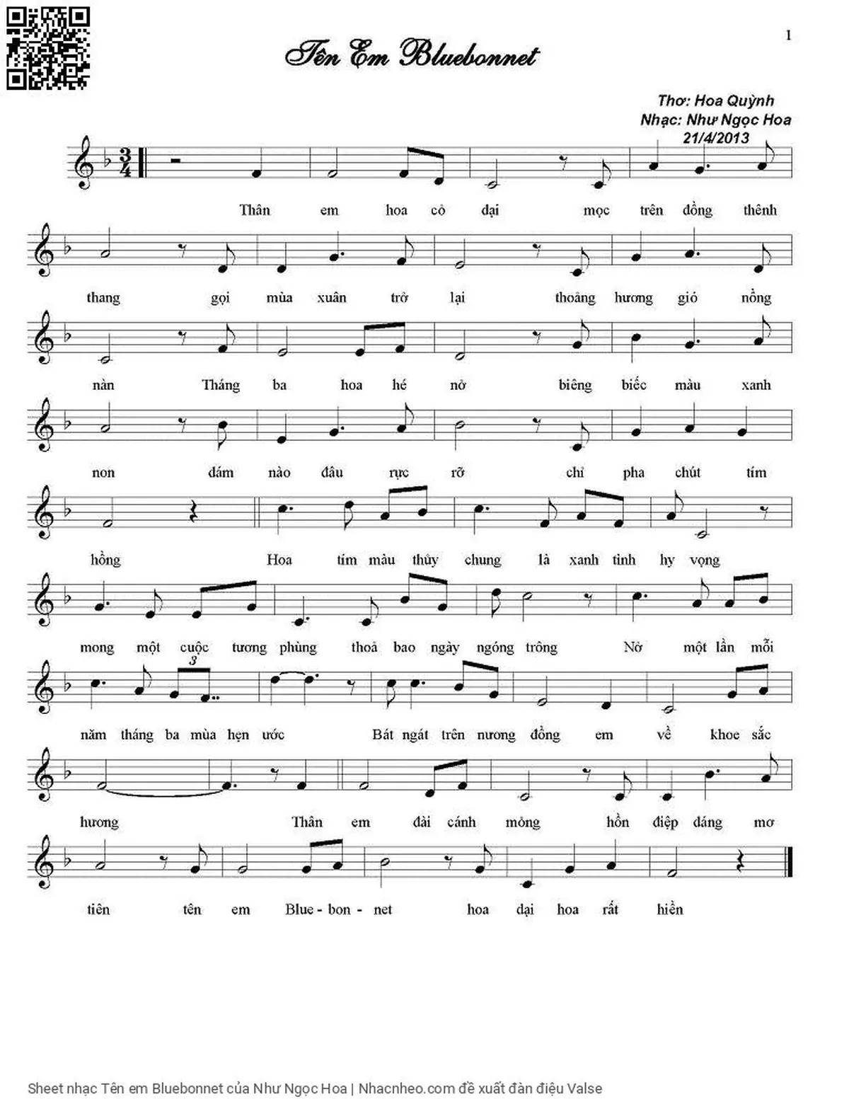 The Videos/audios Tên em Bluebonnet by Như Ngọc Hoa were embed from Youtube, Musescore or the other 3rd links. Videos are subject to 3rd's copyright control and may be removed by YouTube's copyright rules and 3rd's policies or maybe included advertisements. If you cannot access to these songs, this mean that have been removed.