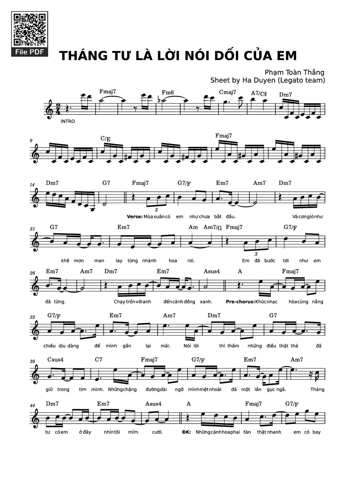 Sheet PDF with the same name Tháng tư là lời nói dối của em: