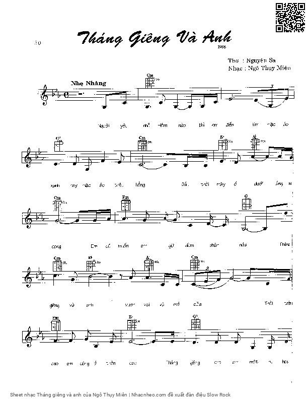 Transposition is the process of moving a song's melody and chords up or down in pitch by a constant interval. The direction of the transposition tool is indicated by a plus (+) sign for up and a minus (-) sign for down. Hover mouse over chords signs to see the chords chart of Tháng giêng và anh song.