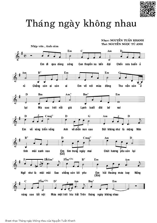 Nguyễn Tuấn Khanh Em đi qua dòng sông Con thuyền xa bến đợi [PDF] [Sheet] [Lyrics] [Mp4/Midi]