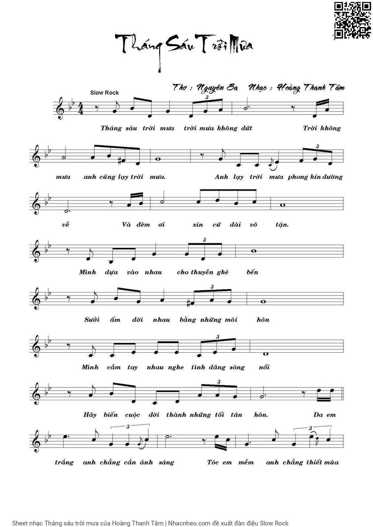 Hoàng Thanh Tâm Tháng sáu trời mưa trời mưa không dứt [PDF] [Sheet] [Lyrics] [Mp4/Midi] [Story and comment]