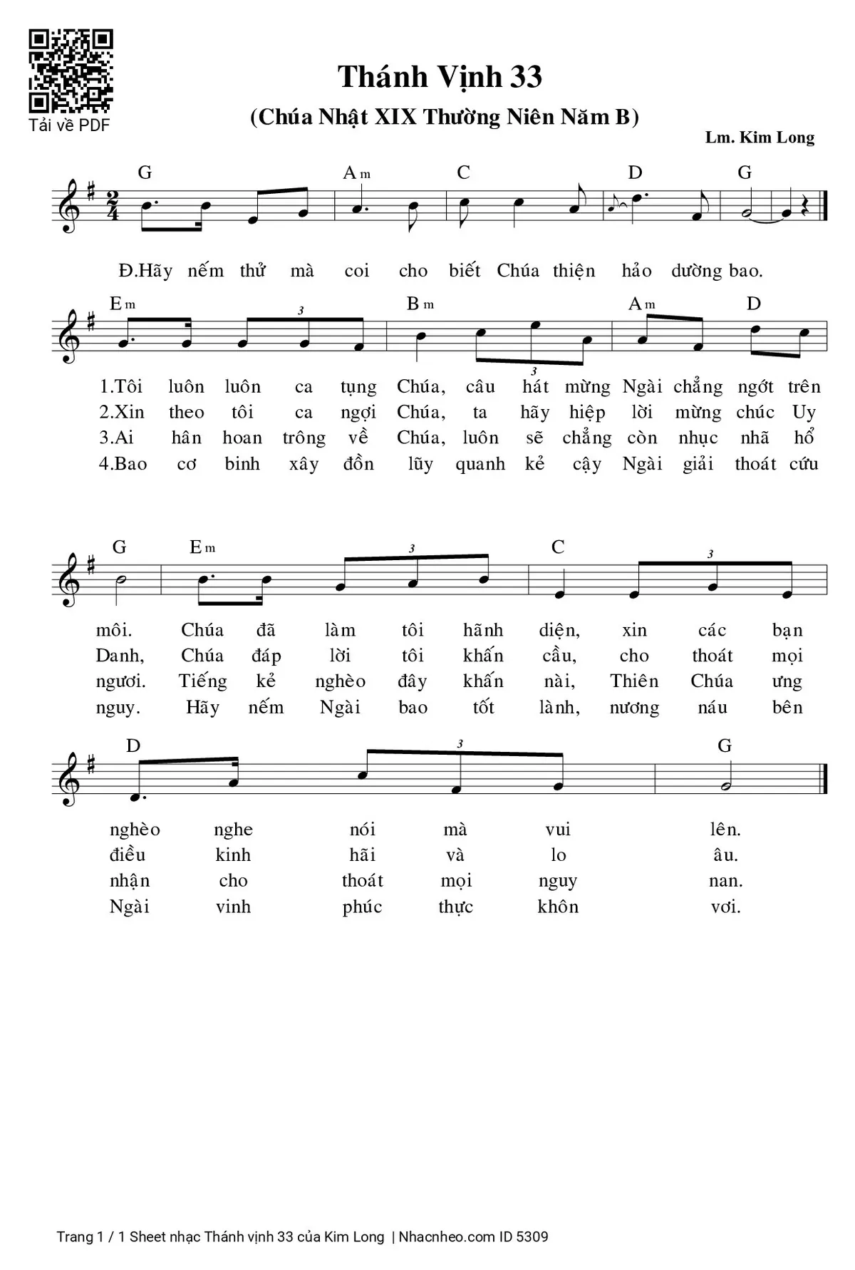 Sheet PDF with the same name Thánh vịnh 33:
