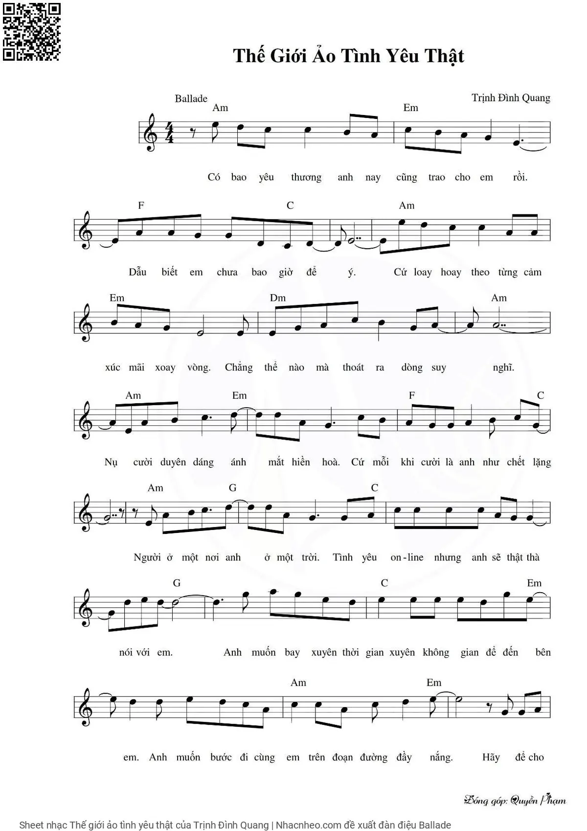Trịnh Đình Quang Có bao yêu thương anh nay cũng trao cho em rồi [PDF] [Sheet] [Lyrics] [Mp4/Midi]