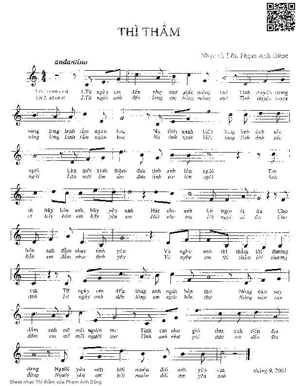 Phạm Anh Dũng Từ ngày em đến nhẹ như giấc mộng mơ [PDF] [Sheet] [Lyrics] [Mp4/Midi]