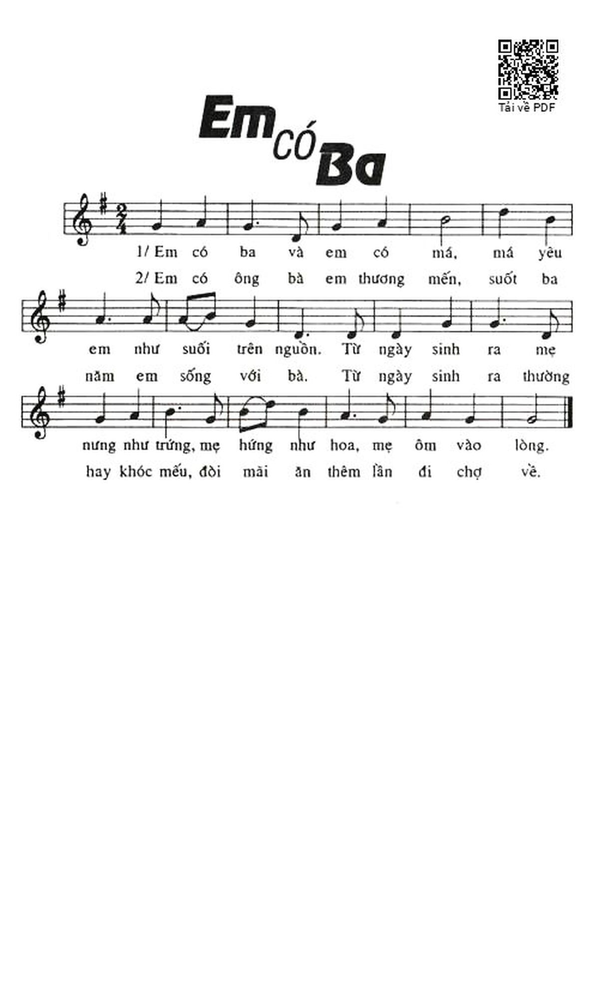 Văn Khoa Em có ba là em có má Má yêu em như suối trên ngàn [PDF] [Sheet] [Lyrics] [Mp4/Midi]