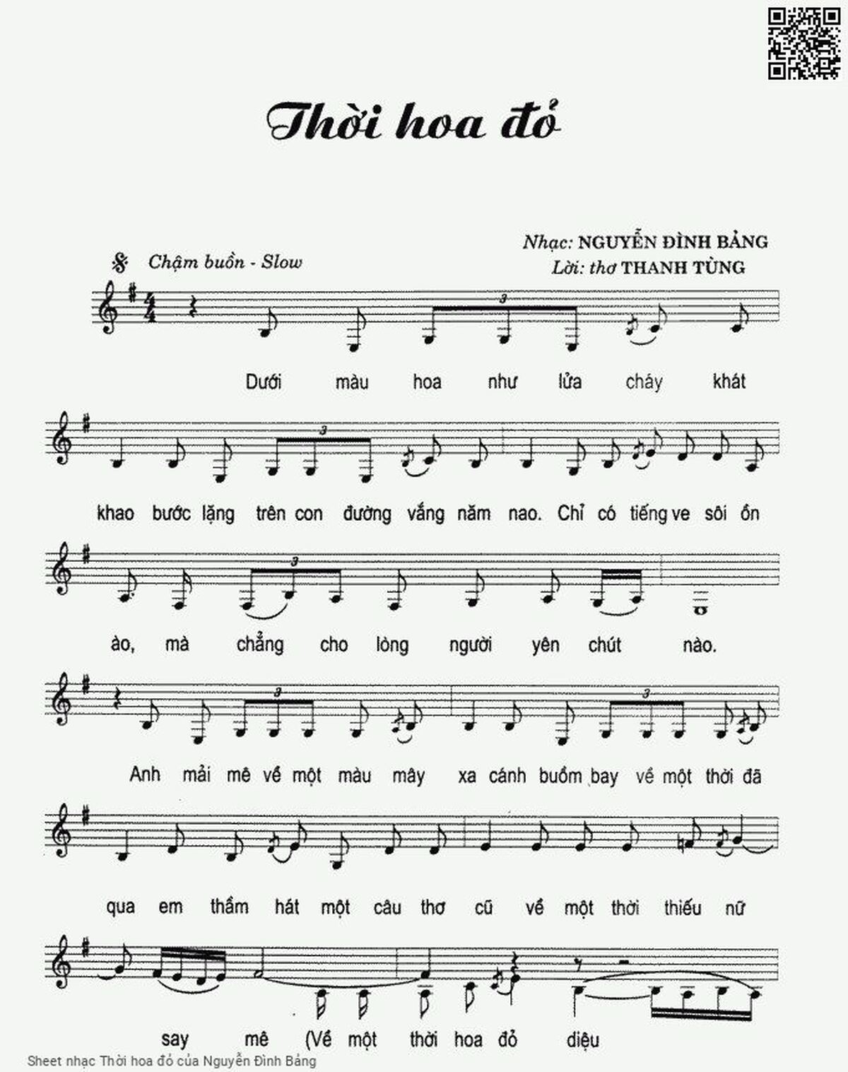Nguyễn Đình Bảng Dưới màu hoa như lửa cháy khát khao Bước lặng trên con đường vắng năm nao [PDF] [Sheet] [Lyrics] [Mp4/Midi] [Story and comment]