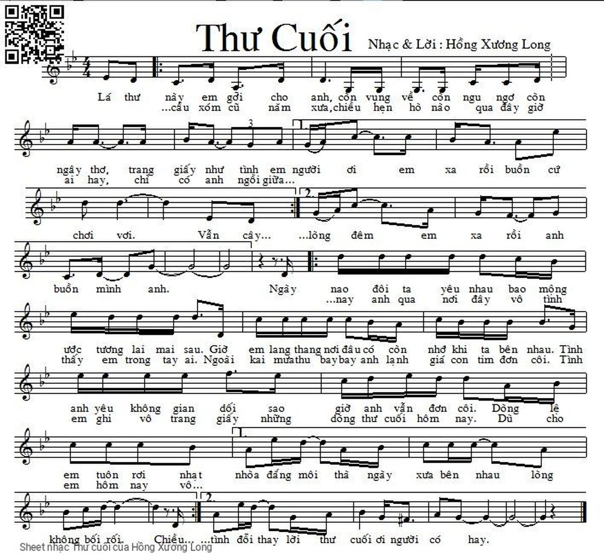 Hồng Xương Long Lá thư này em gởi cho anh Còn vụng về còn ngu ngơ còn ngây thơ [PDF] [Sheet] [Lyrics] [Mp4/Midi] [Story and comment]