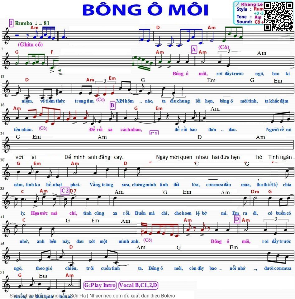 Sơn Hạ Bông ô môi rơi đầy trước ngõ Bao kỷ niệm về tiềm thức trong tim [PDF] [Sheet] [Lyrics] [Mp4/Midi]