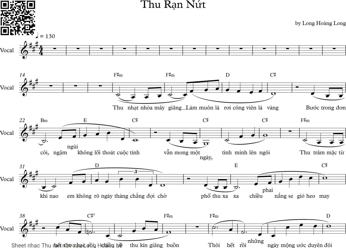 Long Hoàng Lê Thu nhạt nhòa mây giăng Làm muôn lá rơi công viên lá vàng [PDF] [Sheet] [Lyrics] [Mp4/Midi]