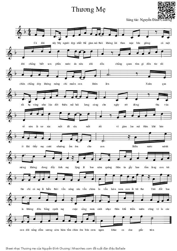 Nguyễn Đình Chương Cả đời này mẹ người đẹp nhất thế gian mà thôi [PDF] [Sheet] [Lyrics] [Mp4/Midi]