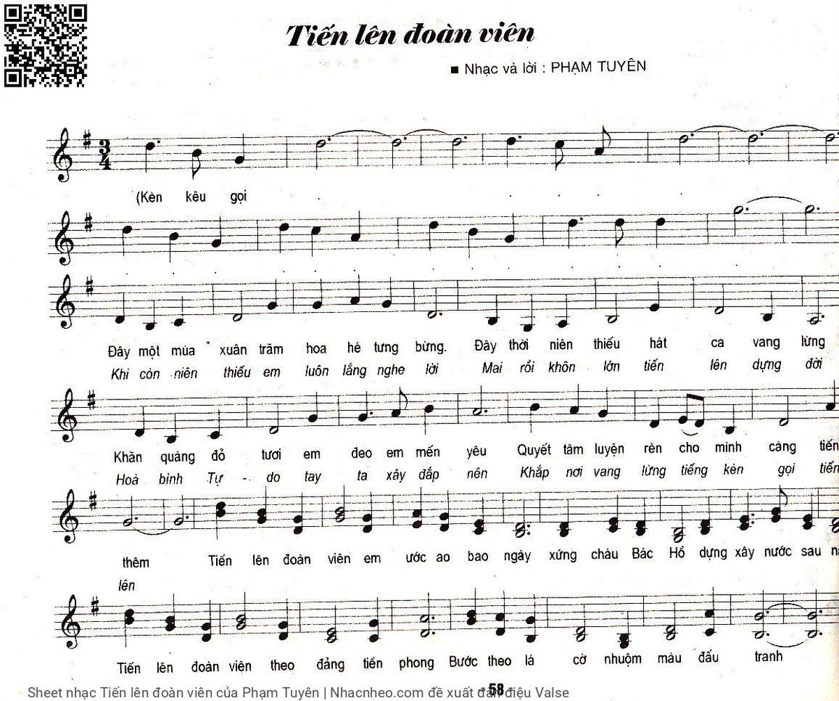 Transposition is the process of moving a song's melody and chords up or down in pitch by a constant interval. The direction of the transposition tool is indicated by a plus (+) sign for up and a minus (-) sign for down. Hover mouse over chords signs to see the chords chart of Tiến lên đoàn viên song.