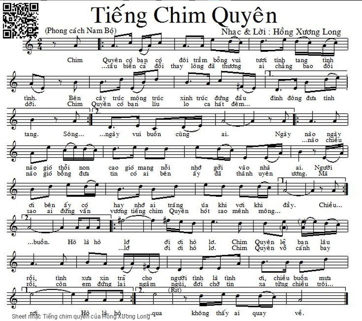 Hồng Xương Long Chim quyên có bạn có đôi Trầm bổng vui tươi tính tang tình tình [PDF] [Sheet] [Lyrics] [Mp4/Midi]