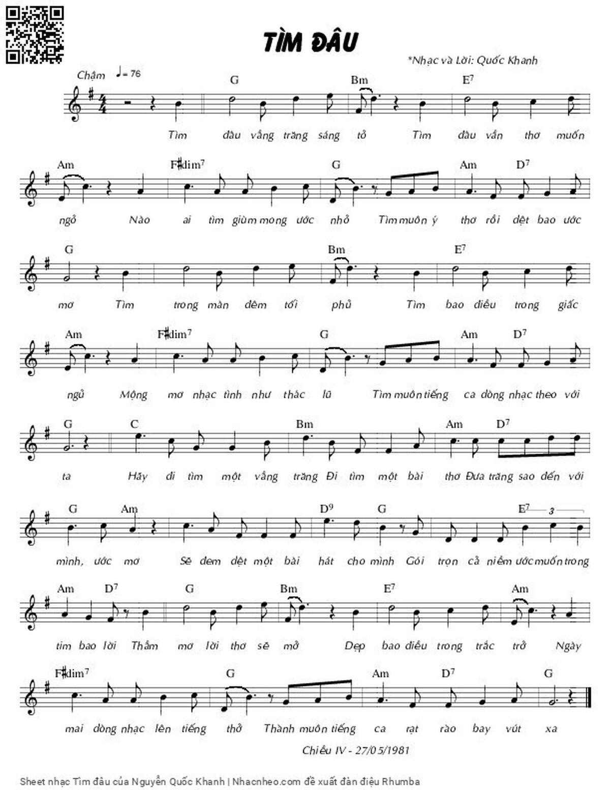 Nguyễn Quốc Khanh Tìm đâu vầng trăng sáng tỏ Tìm đâu vần thơ muốn ngỏ [PDF] [Sheet] [Lyrics] [Mp4/Midi]