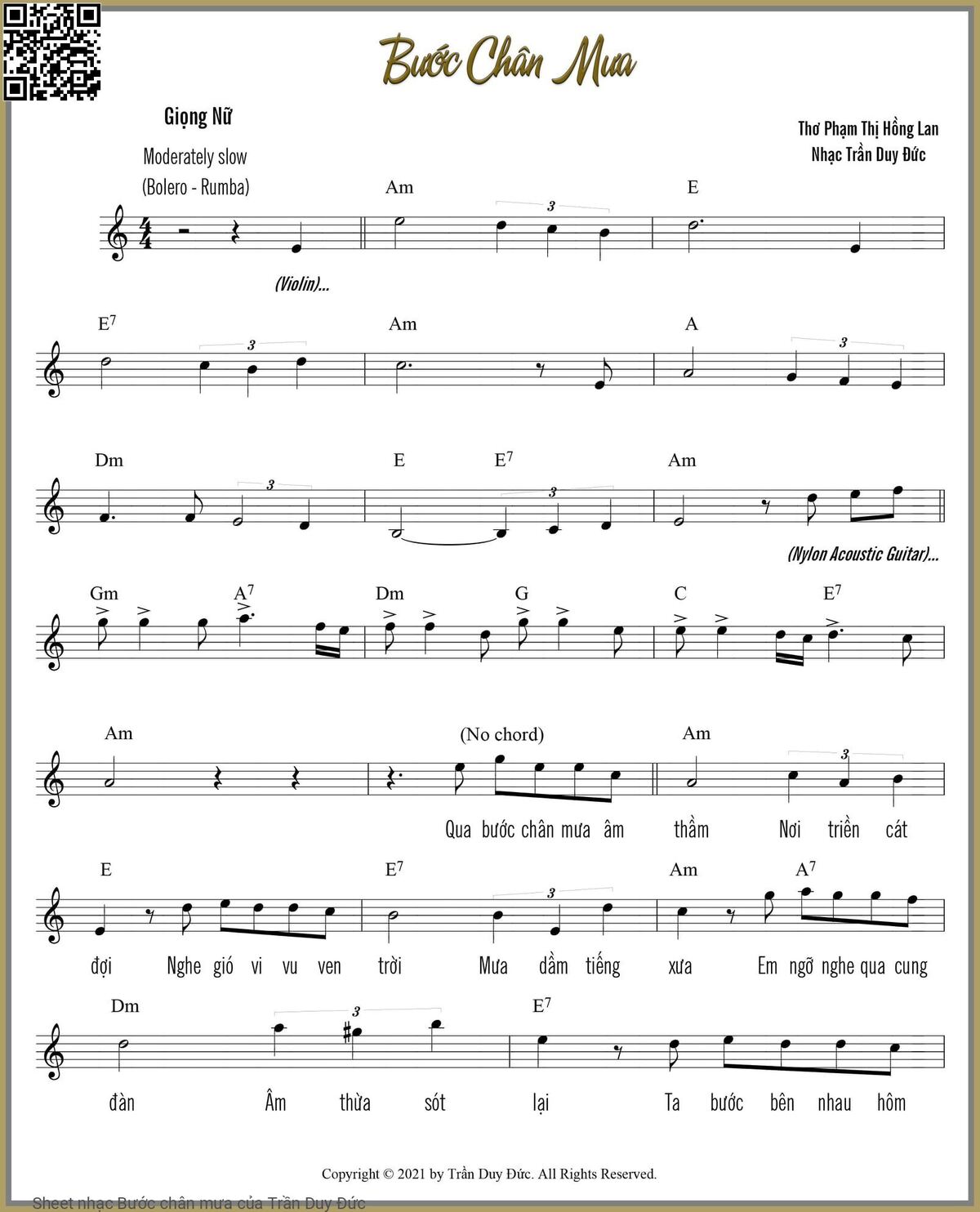 Trần Duy Đức Qua bước chân mưa âm thầm nơi triền cát đợi [PDF] [Sheet] [Lyrics] [Mp4/Midi]