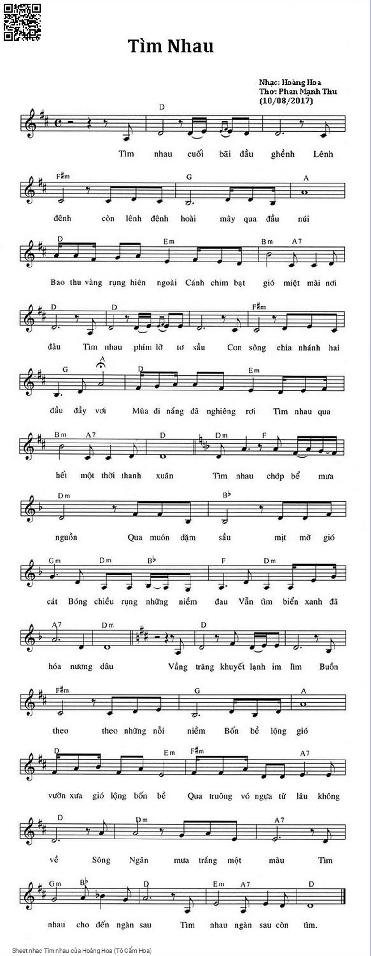 Hoàng Hoa (Tô Cẩm Hoa) Tìm nhau cuối bãi đầu ghềnh Lênh đênh còn lênh đênh hoài mây qua đầu núi [PDF] [Sheet] [Lyrics] [Mp4/Midi]