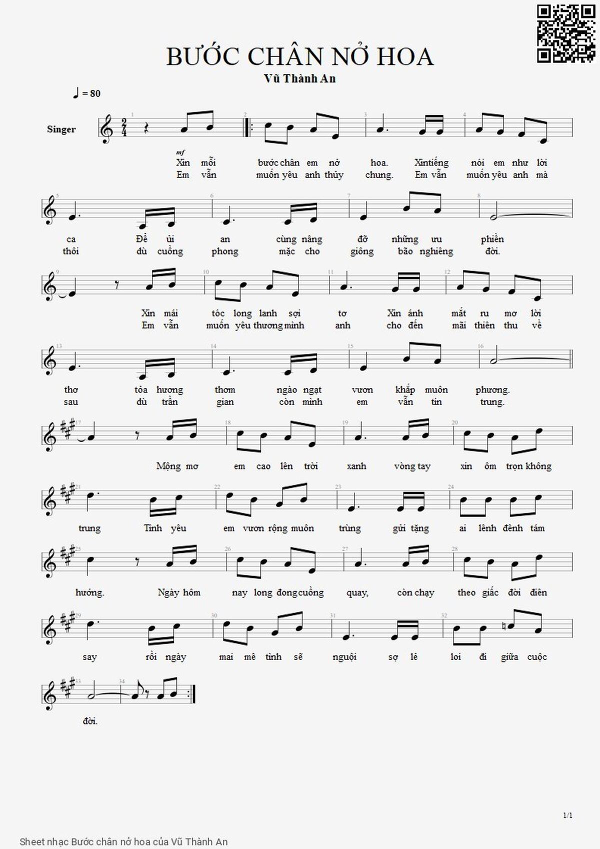Vũ Thành An Xin mỗi bước chân em nở hoa Xin tiếng nói em như lời ca [PDF] [Sheet] [Lyrics] [Mp4/Midi]