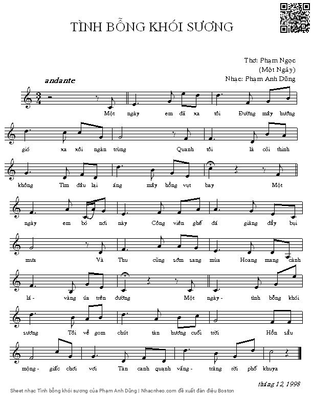 Phạm Anh Dũng Một ngày em đã xa tôi Đường mây hướng gió xa xôi ngàn trùng [PDF] [Sheet] [Lyrics] [Mp4/Midi]