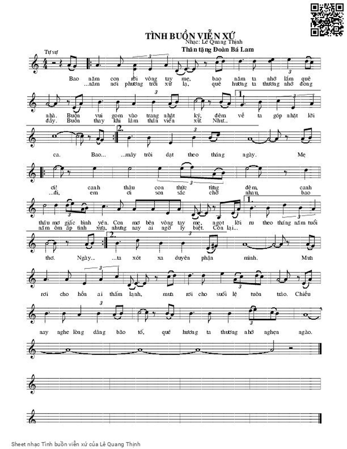 Lê Quang Thịnh Bao năm con rời vòng tay mẹ Bao năm ta nhớ lắm quê nhà [PDF] [Sheet] [Lyrics] [Mp4/Midi]
