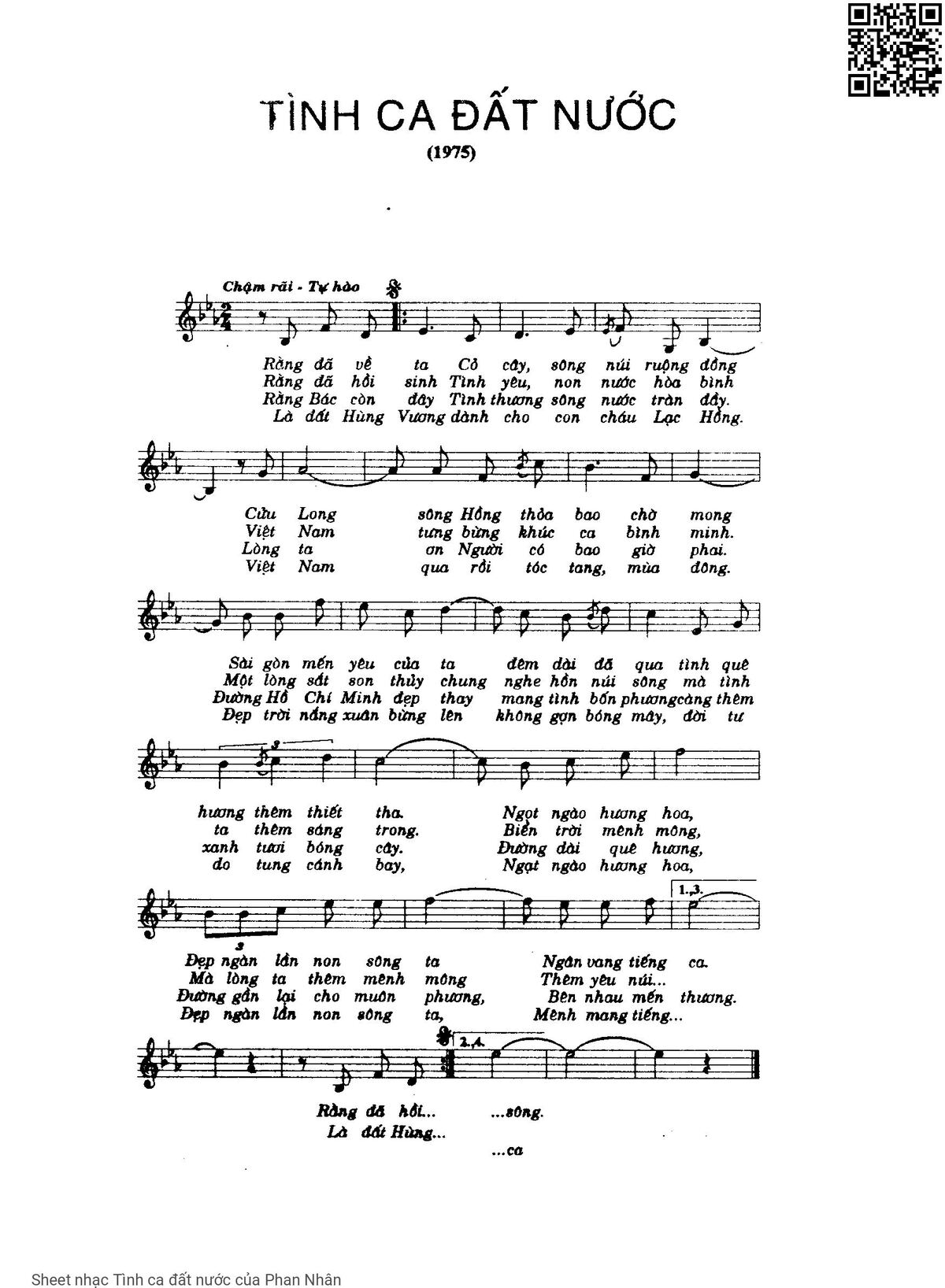The Videos/audios Tình ca đất nước by Phan Nhân were embed from Youtube, Musescore or the other 3rd links. Videos are subject to 3rd's copyright control and may be removed by YouTube's copyright rules and 3rd's policies or maybe included advertisements. If you cannot access to these songs, this mean that have been removed.