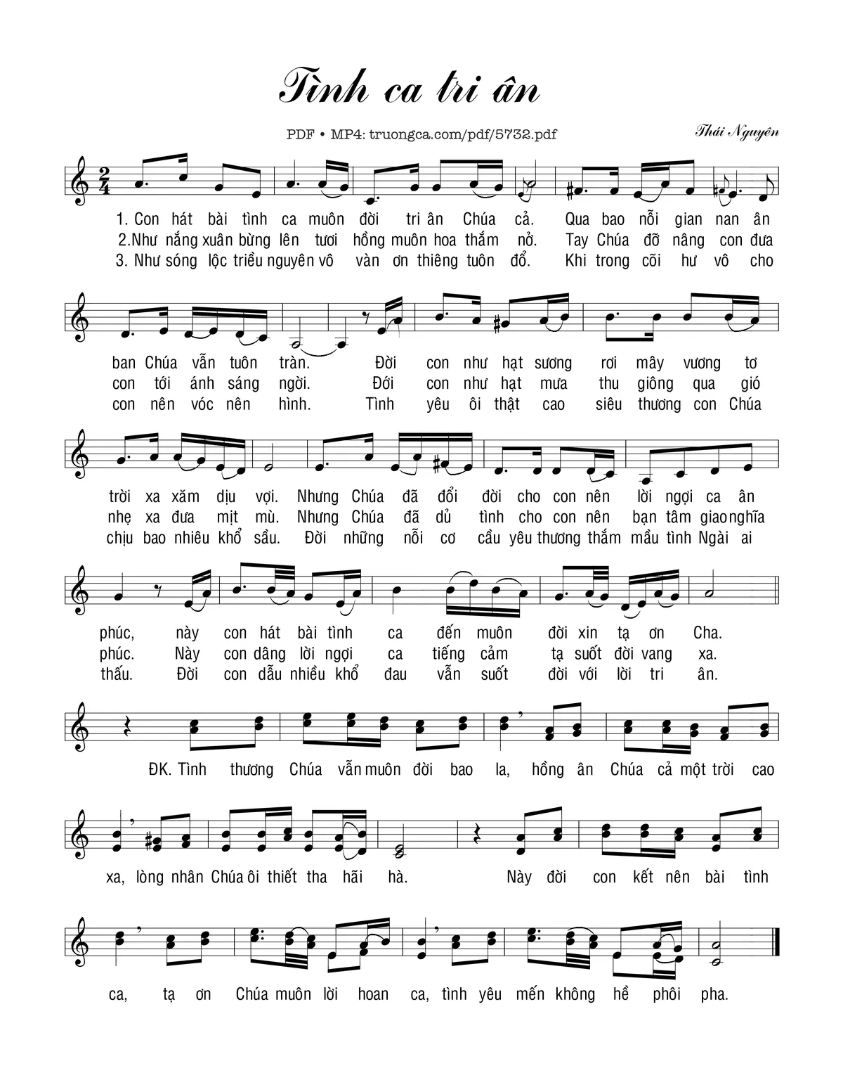 Lm. Thái Nguyên Con hát bài tình ca muôn đời tri ân chúa cả [PDF] [Sheet] [Lyrics] [Mp4/Midi]