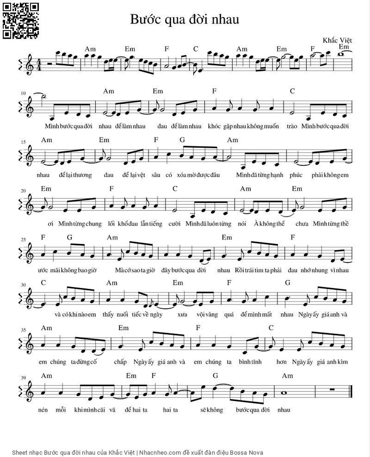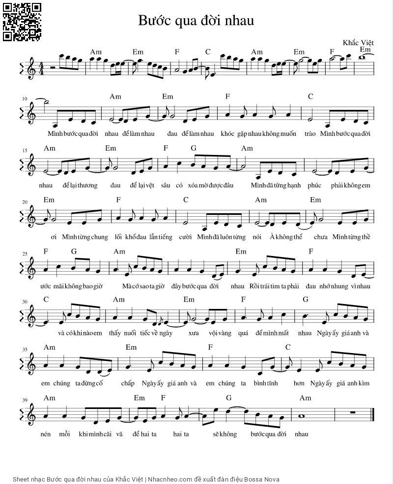 Khắc Việt Mình bước qua đời nhau để làm nhau đau [PDF] [Sheet] [Lyrics] [Mp4/Midi]