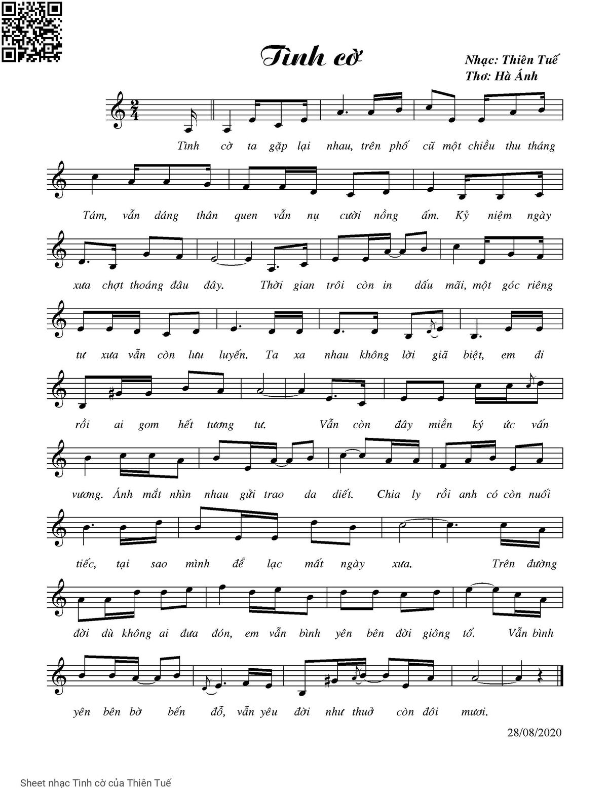 Thiên Tuế Tình cờ ta gặp lại ta gặp lại nhau trên phố cũ một chiều thu tháng Tám [PDF] [Sheet] [Lyrics] [Mp4/Midi]