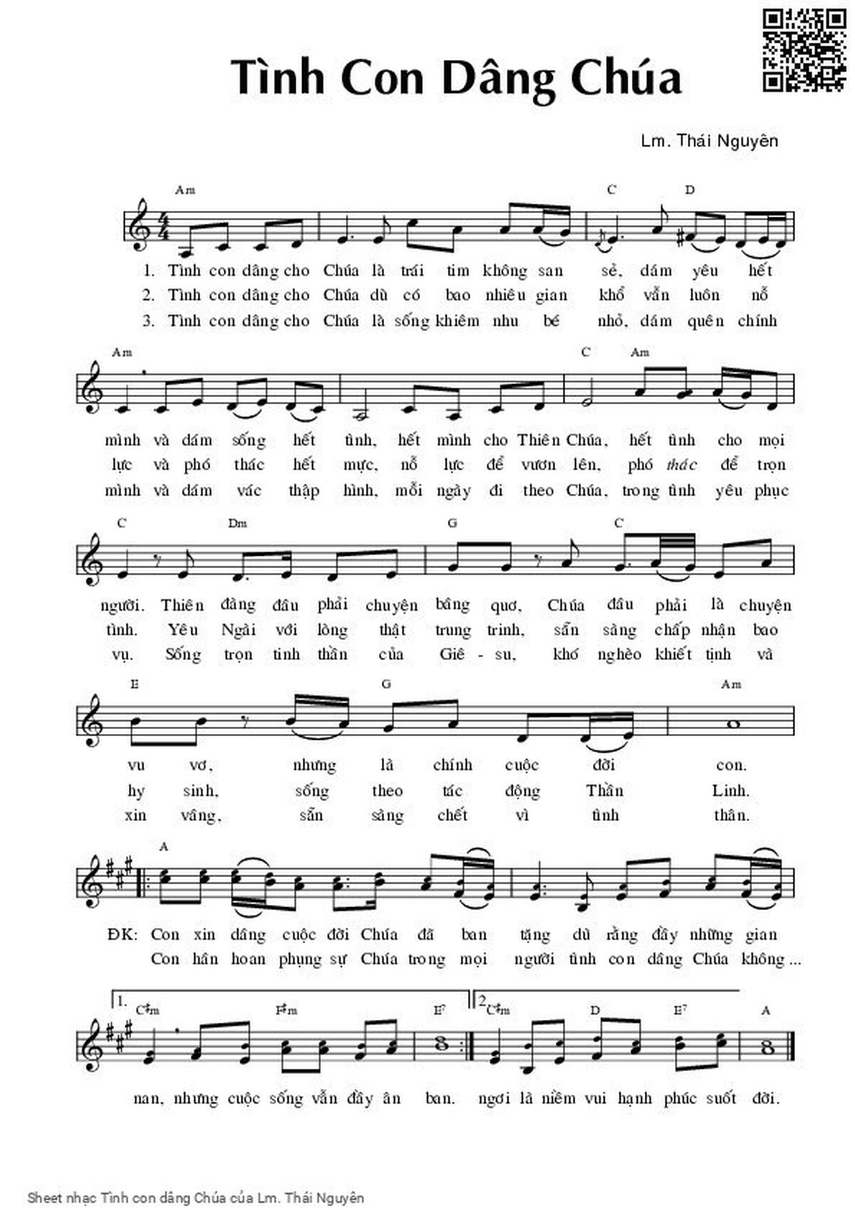Lm. Thái Nguyên Tình con dâng cho Chúa là trái tim không san sẻ [PDF] [Sheet] [Lyrics] [Mp4/Midi]