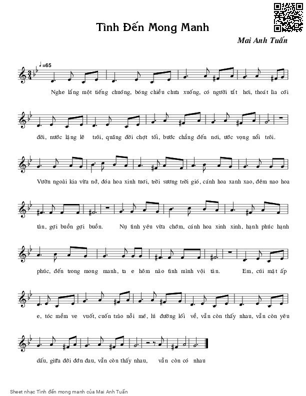 Mai Anh Tuấn Nghe lắng một tiếng chuông Bóng chiều chưa xuống [PDF] [Sheet] [Lyrics] [Mp4/Midi]