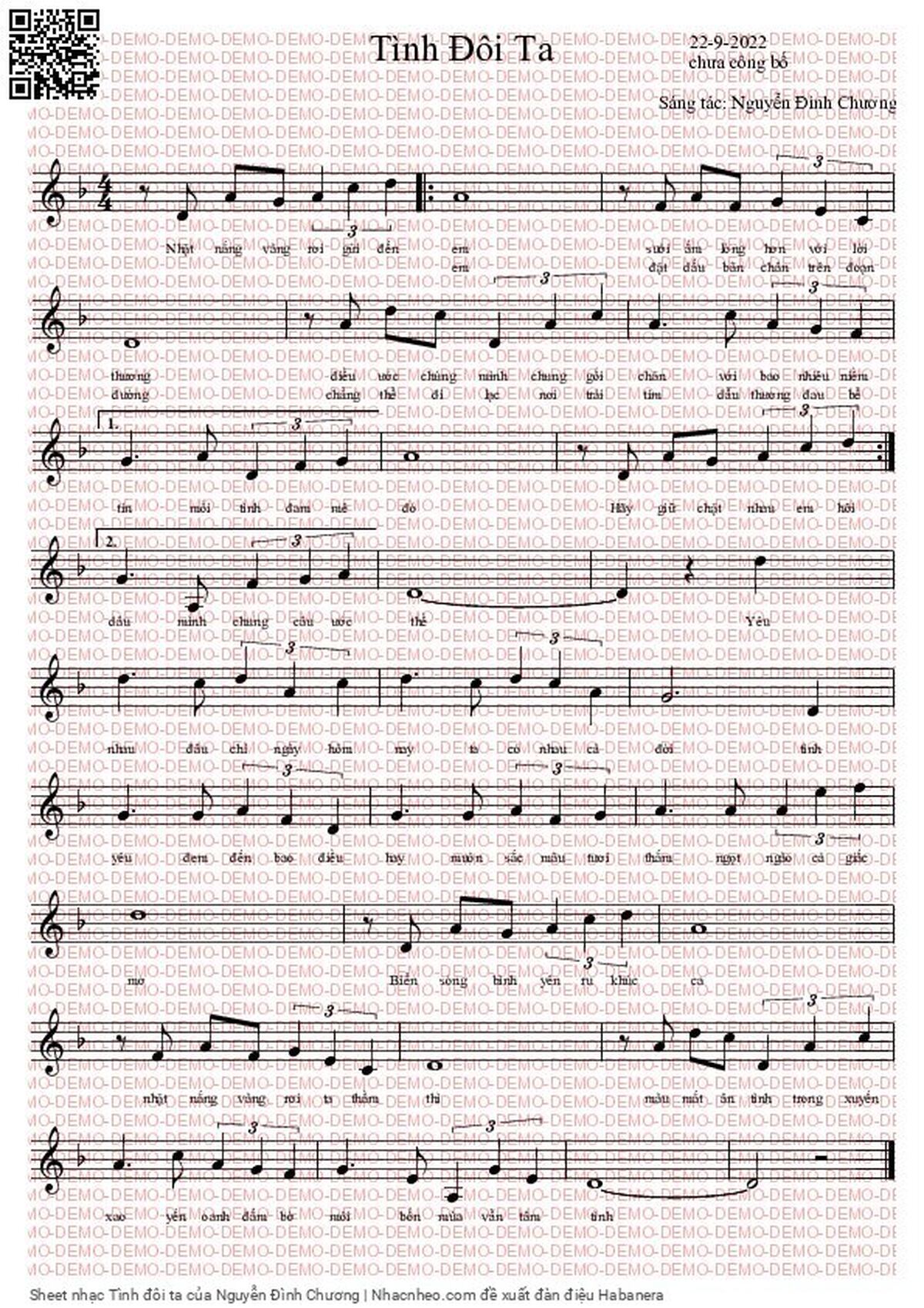The Videos/audios Tình đôi ta by Nguyễn Đình Chương were embed from Youtube, Musescore or the other 3rd links. Videos are subject to 3rd's copyright control and may be removed by YouTube's copyright rules and 3rd's policies or maybe included advertisements. If you cannot access to these songs, this mean that have been removed.