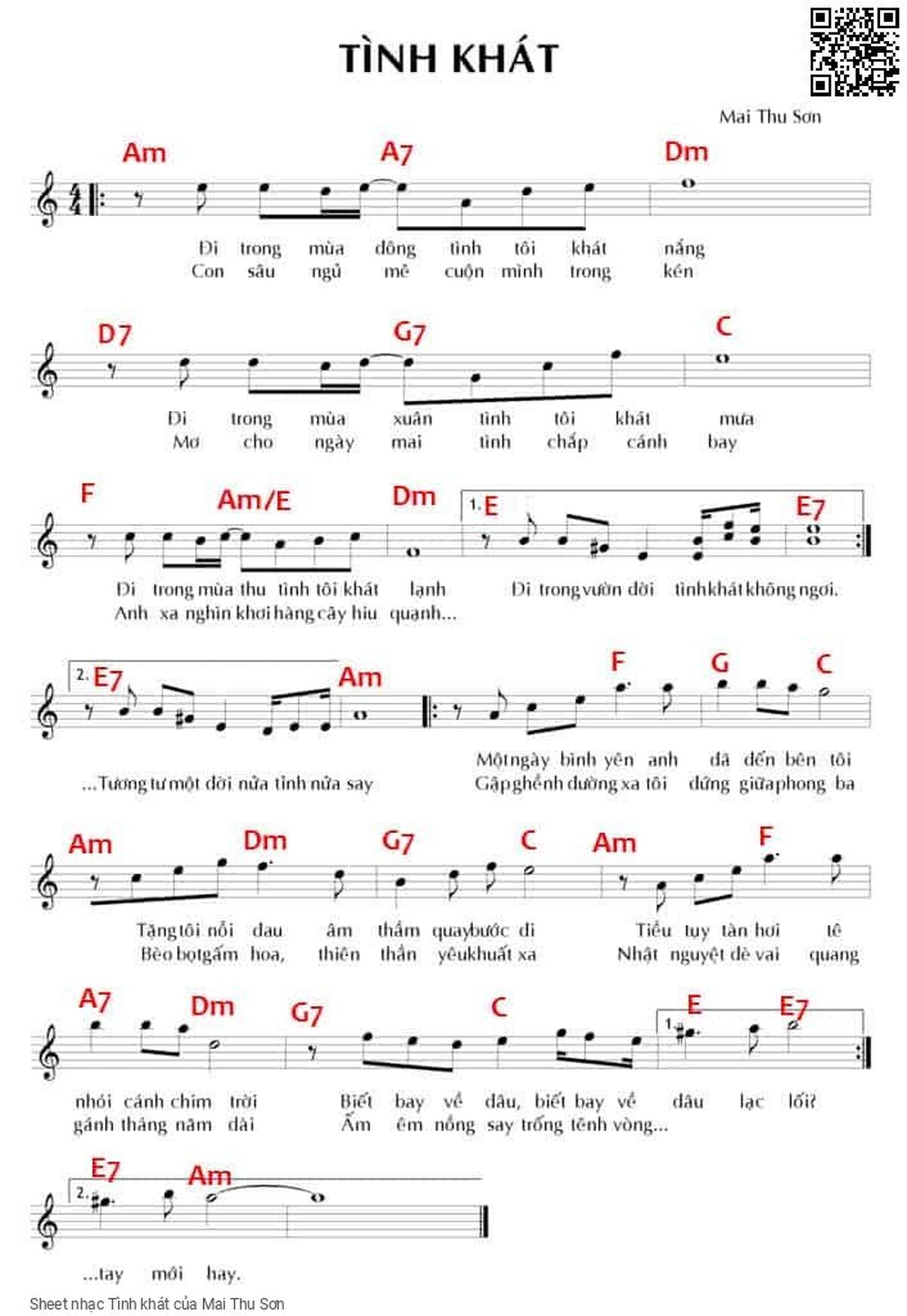 Mai Thu Sơn Đi trong mùa đông tình tôi khát nắng Đi trong mùa xuân tình tôi khát mưa [PDF] [Sheet] [Lyrics] [Mp4/Midi]
