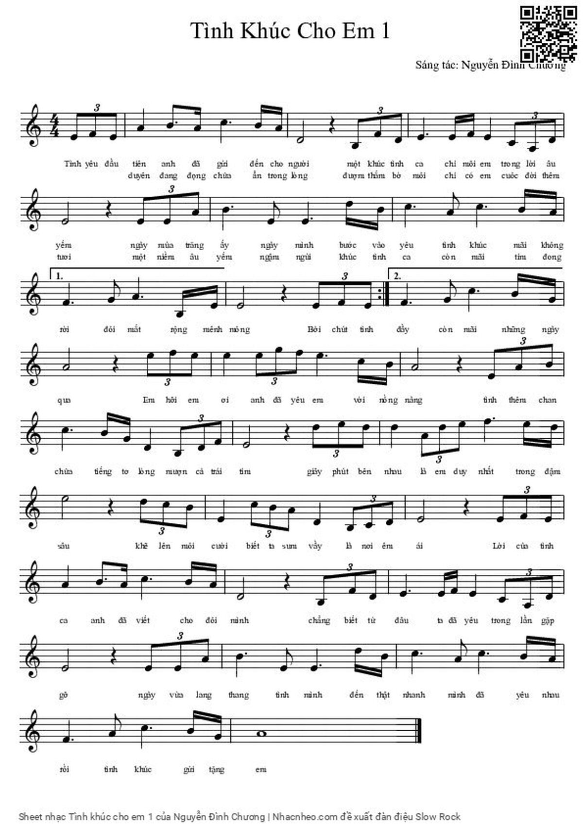 Nguyễn Đình Chương Tình yêu đầu tiên anh đã gửi đến cho người [PDF] [Sheet] [Lyrics] [Mp4/Midi]