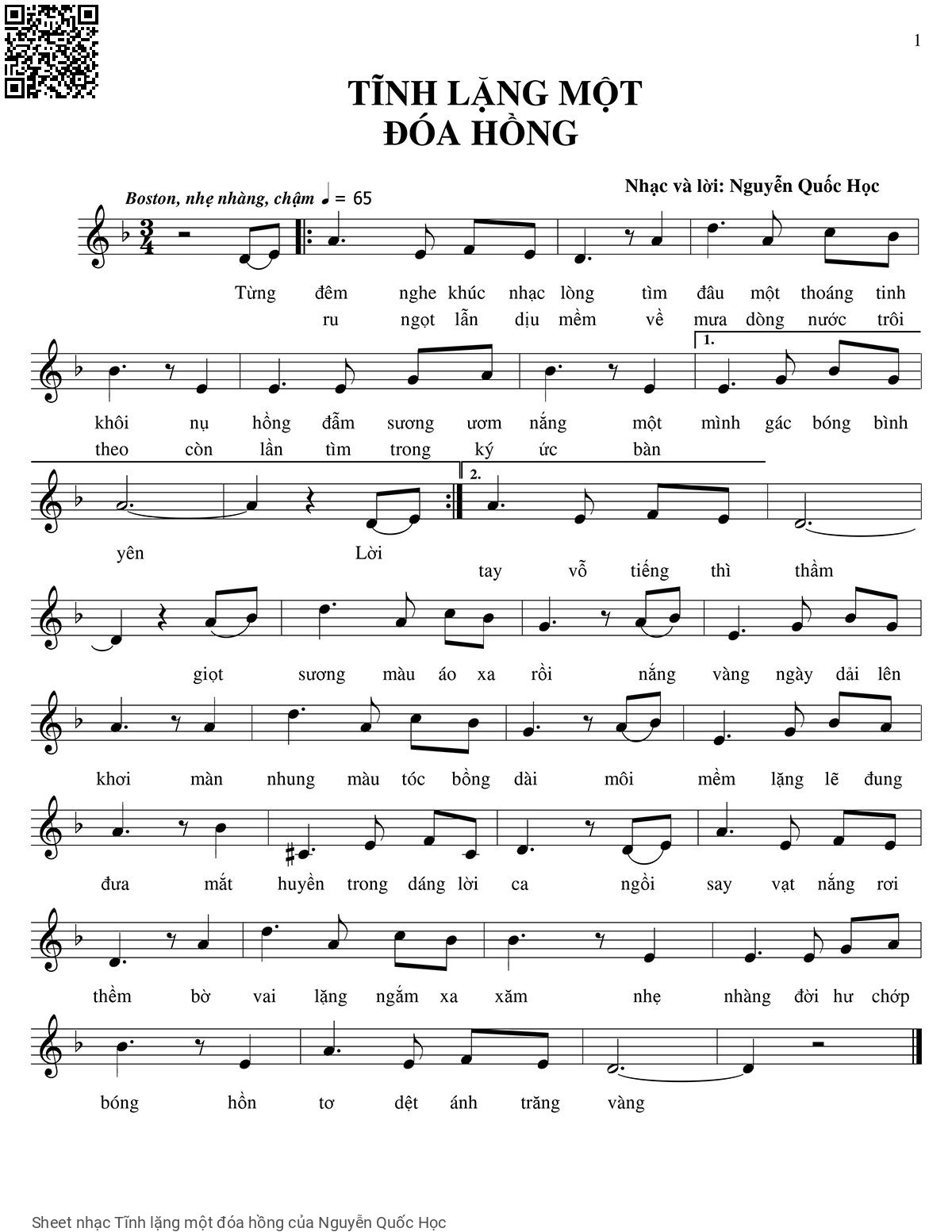 Nguyễn Quốc Học Từng đêm nghe khúc nhạc lòng Tìm đâu một thoáng tinh khôi [PDF] [Sheet] [Lyrics] [Mp4/Midi]