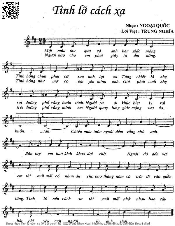 Nhạc Hoa Một mùa thu qua có anh bên giấc mộng Tình hồng chưa phai cớ sao anh lại xa [PDF] [Sheet] [Lyrics] [Mp4/Midi]