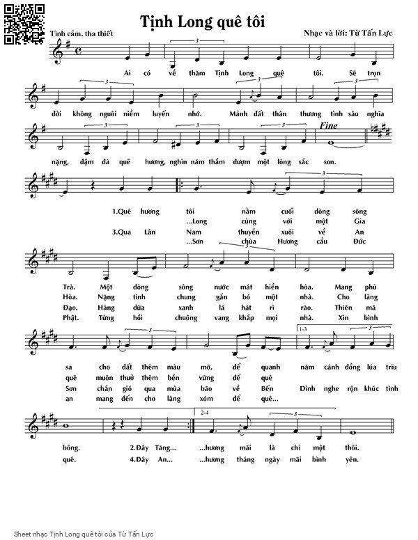 Từ Tấn Lực Ai có về thăm Tịnh Long quê tôi Sẽ trọn đời không nguồi niềm luyến nhớ [PDF] [Sheet] [Lyrics] [Mp4/Midi]