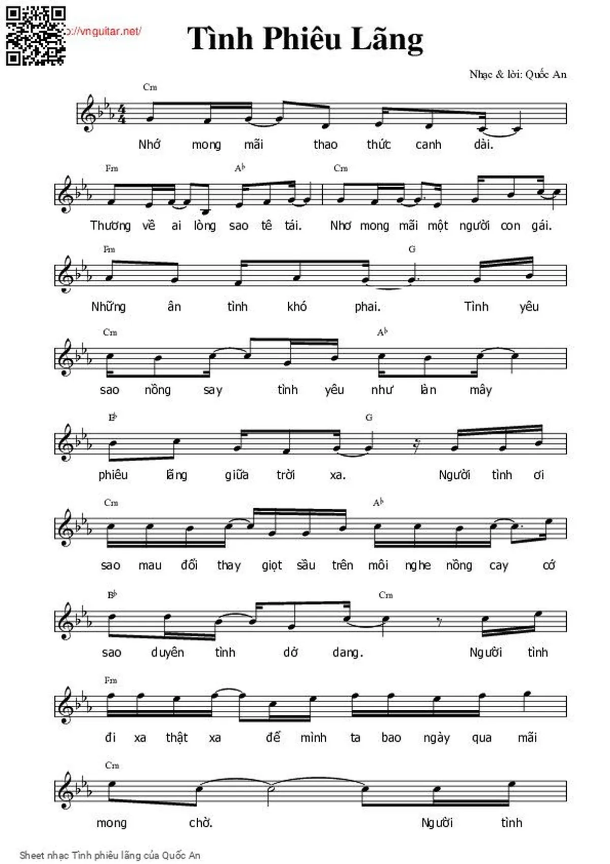 Quốc An Nhớ mong mãi thao thức canh dài Thương về ai lòng sao tê tái [PDF] [Sheet] [Lyrics] [Mp4/Midi]
