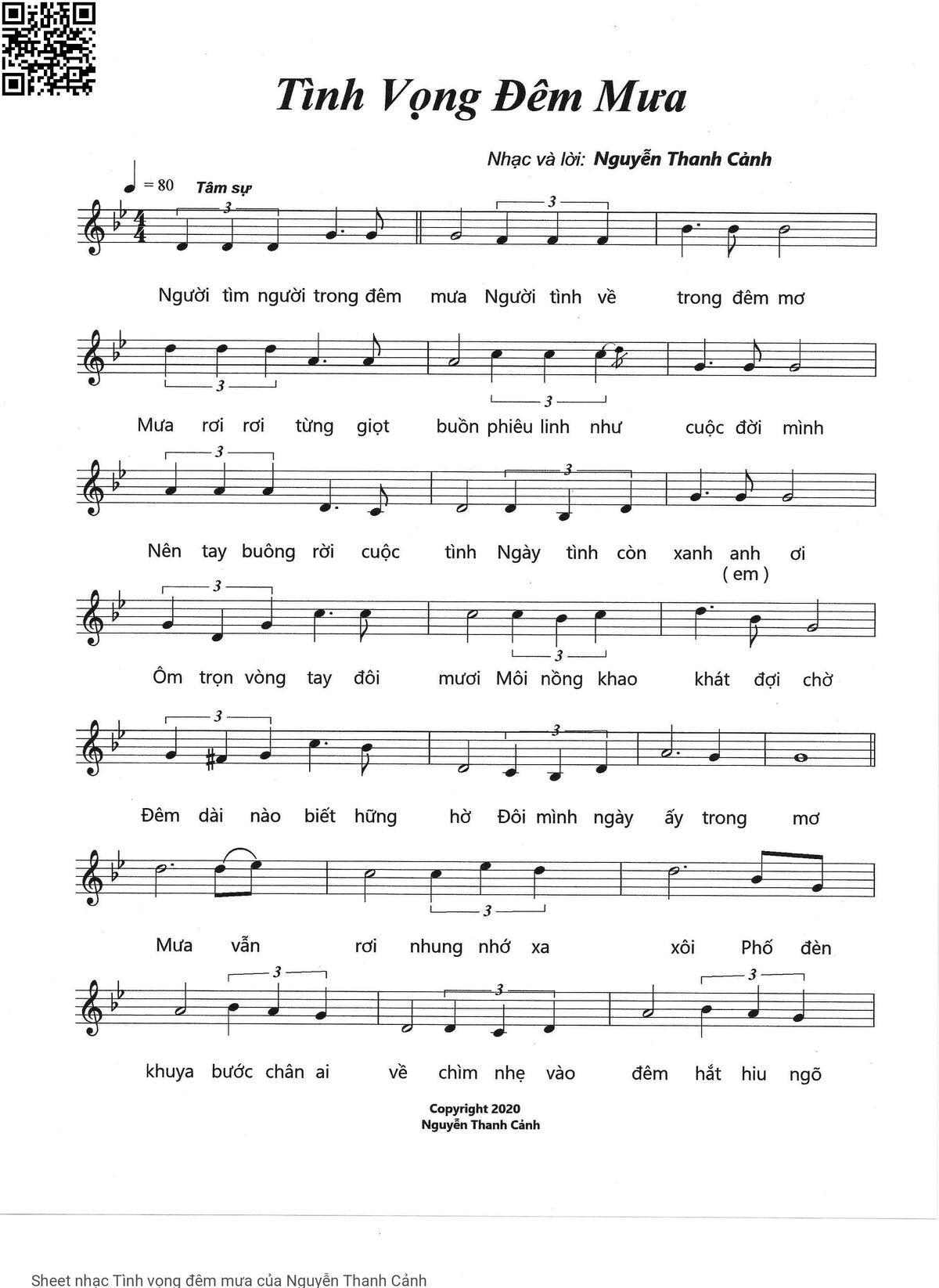 Nguyễn Thanh Cảnh Người tìm người trong đêm mưa Người tình về trong đêm mơ [PDF] [Sheet] [Lyrics] [Mp4/Midi]