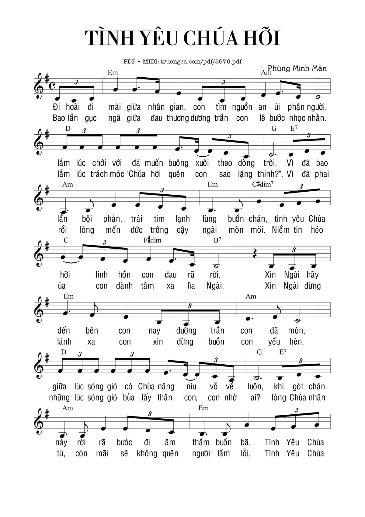 Phùng Minh Mẫn Đi hoài đi mãi giữa nhân gian con tìm nguồn an ủi phận người [PDF] [Sheet] [Lyrics] [Mp4/Midi]