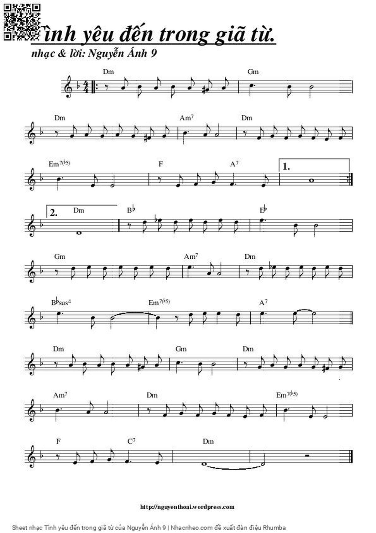Nguyễn Ánh 9 Mưa vẫn rơi mãi trên đường phố vắng đêm khuya [PDF] [Sheet] [Lyrics] [Mp4/Midi]