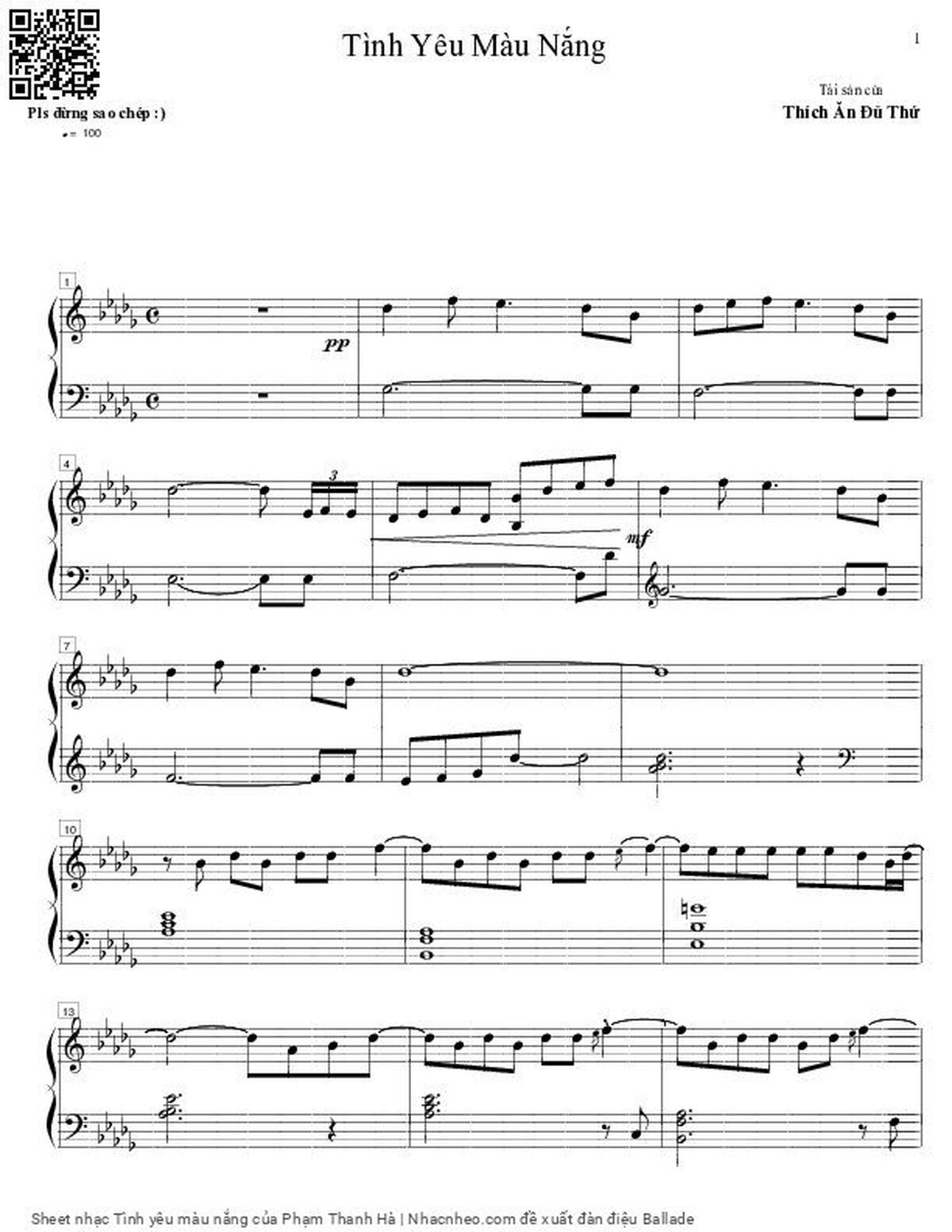 Phạm Thanh Hà Gọi tên của anh là nắng để em được làm mây trắng [PDF] [Sheet] [Lyrics] [Mp4/Midi]