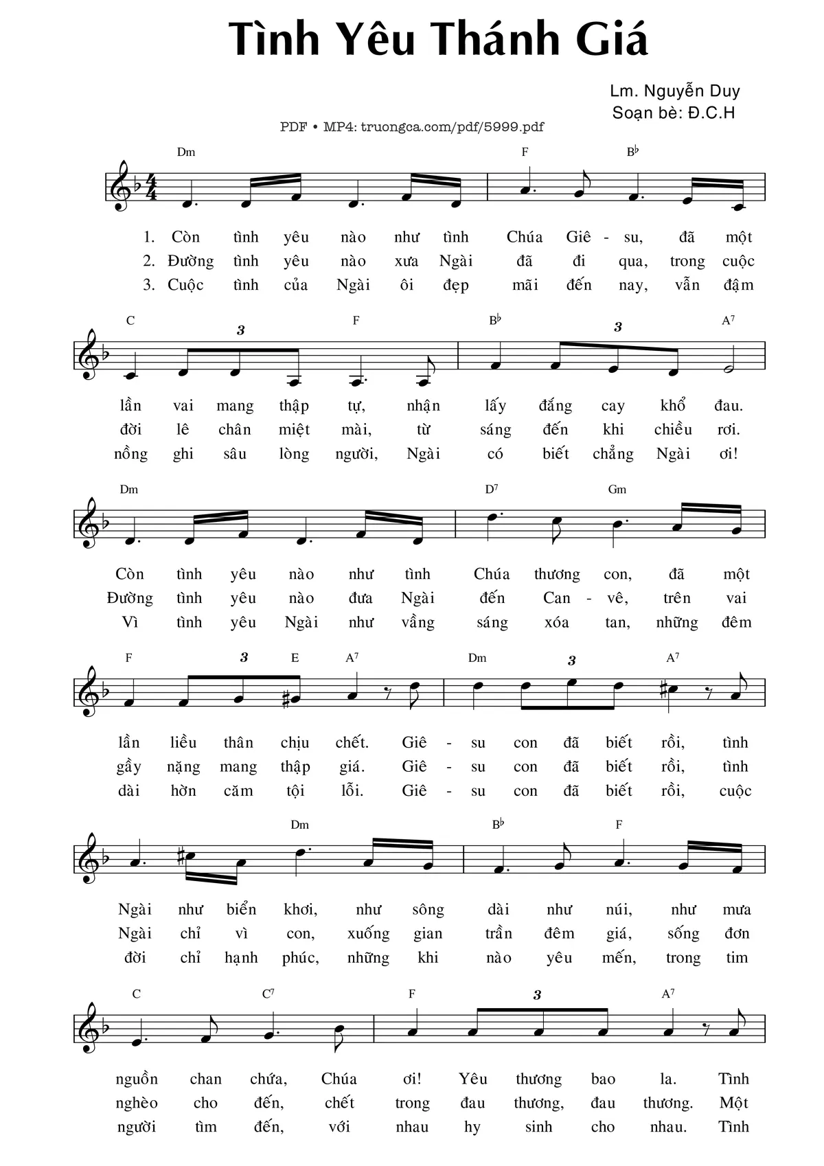 Lm. Nguyễn Duy Còn tình yêu nào như tình Chúa Giêsu Đã một lần vai mang thập tự [PDF] [Sheet] [Lyrics] [Mp4/Midi]