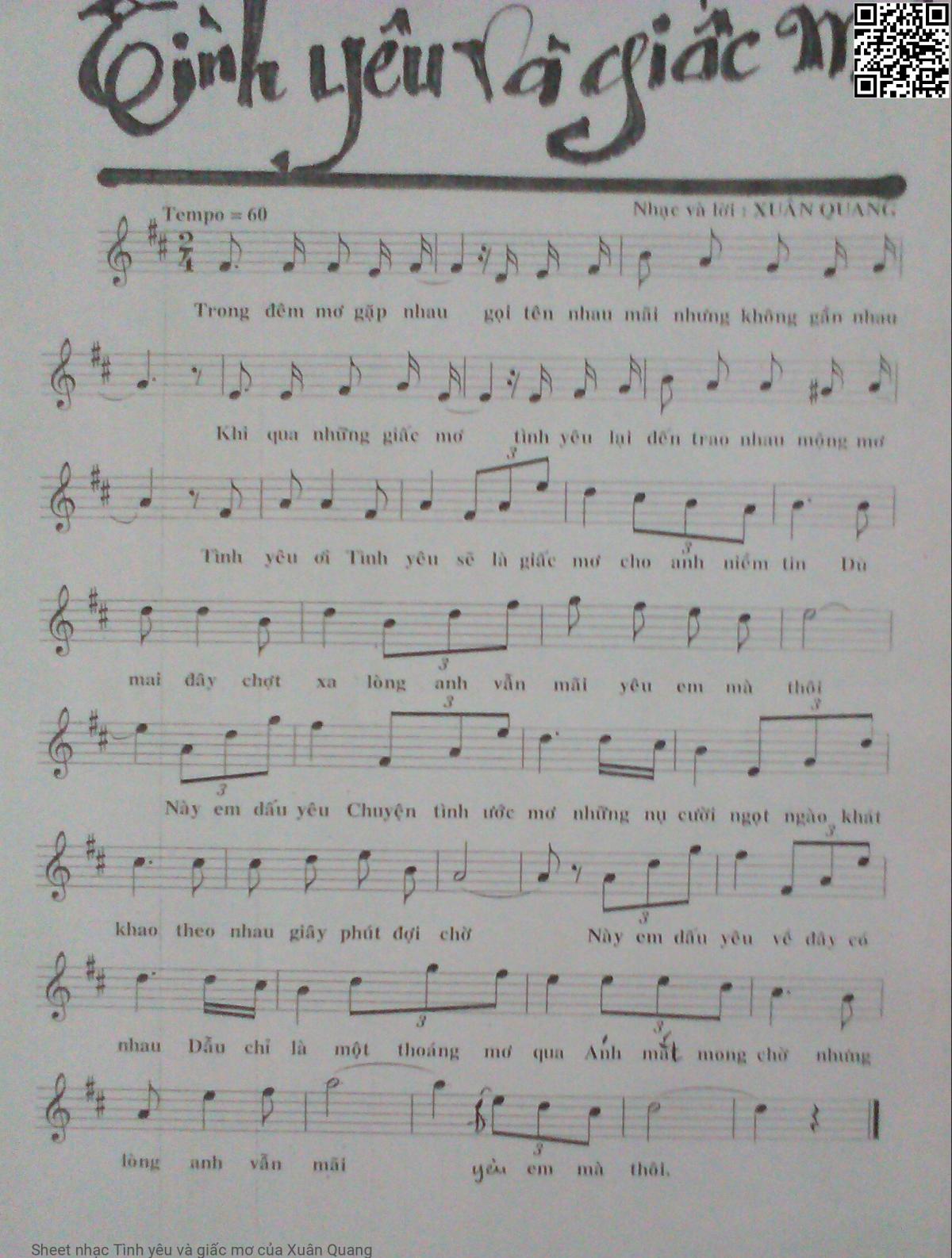 Xuân Quang Trong đêm mơ gặp nhau Gọi tên em mãi nhưng không gần nhau [PDF] [Sheet] [Lyrics] [Mp4/Midi]