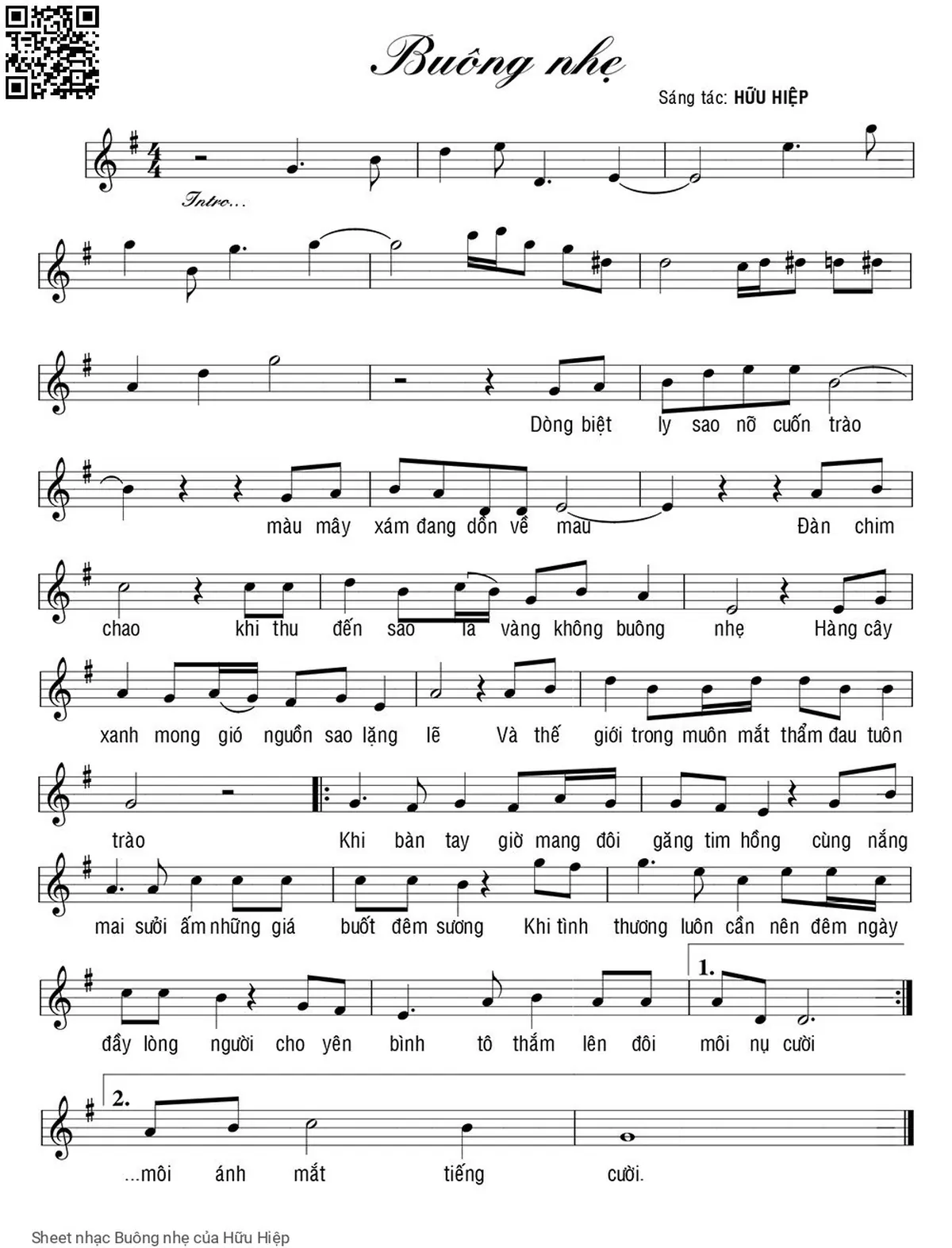 Hữu Hiệp Dòng biệt ly sao nỡ cuốn trào Màu mây xám đang dồn về mau [PDF] [Sheet] [Lyrics] [Mp4/Midi]