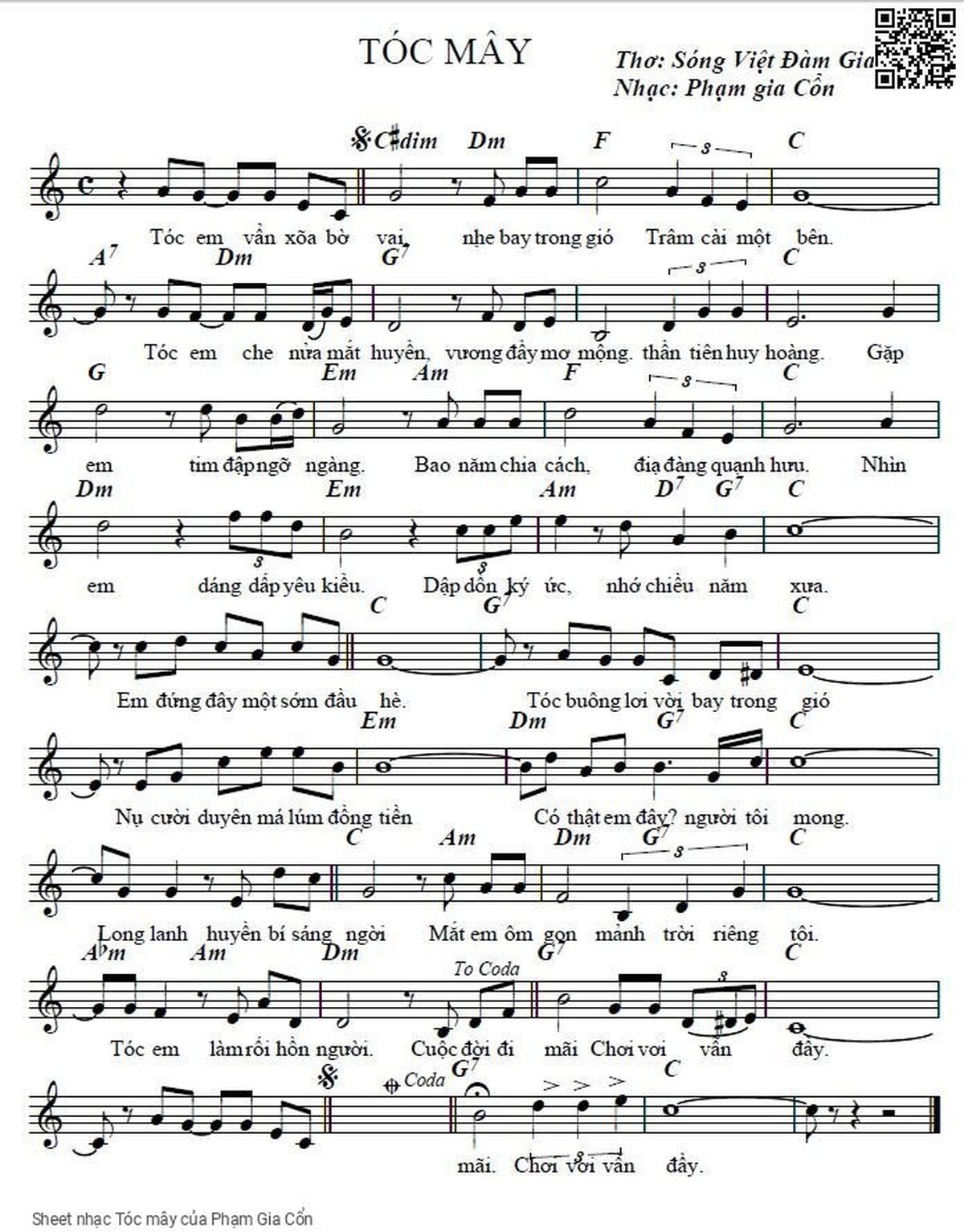 Phạm Gia Cổn Tóc em vẫn xõa bờ vai Nhẹ bay trong gió [PDF] [Sheet] [Lyrics] [Mp4/Midi]