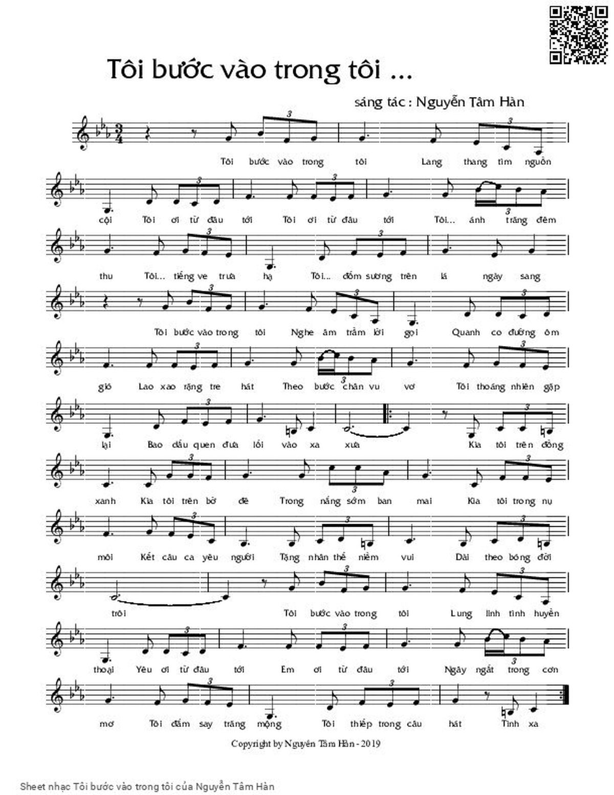 Nguyễn Tâm Hàn Tôi bước vào trong tôi lang thang tìm nguồn cội [PDF] [Sheet] [Lyrics] [Mp4/Midi]
