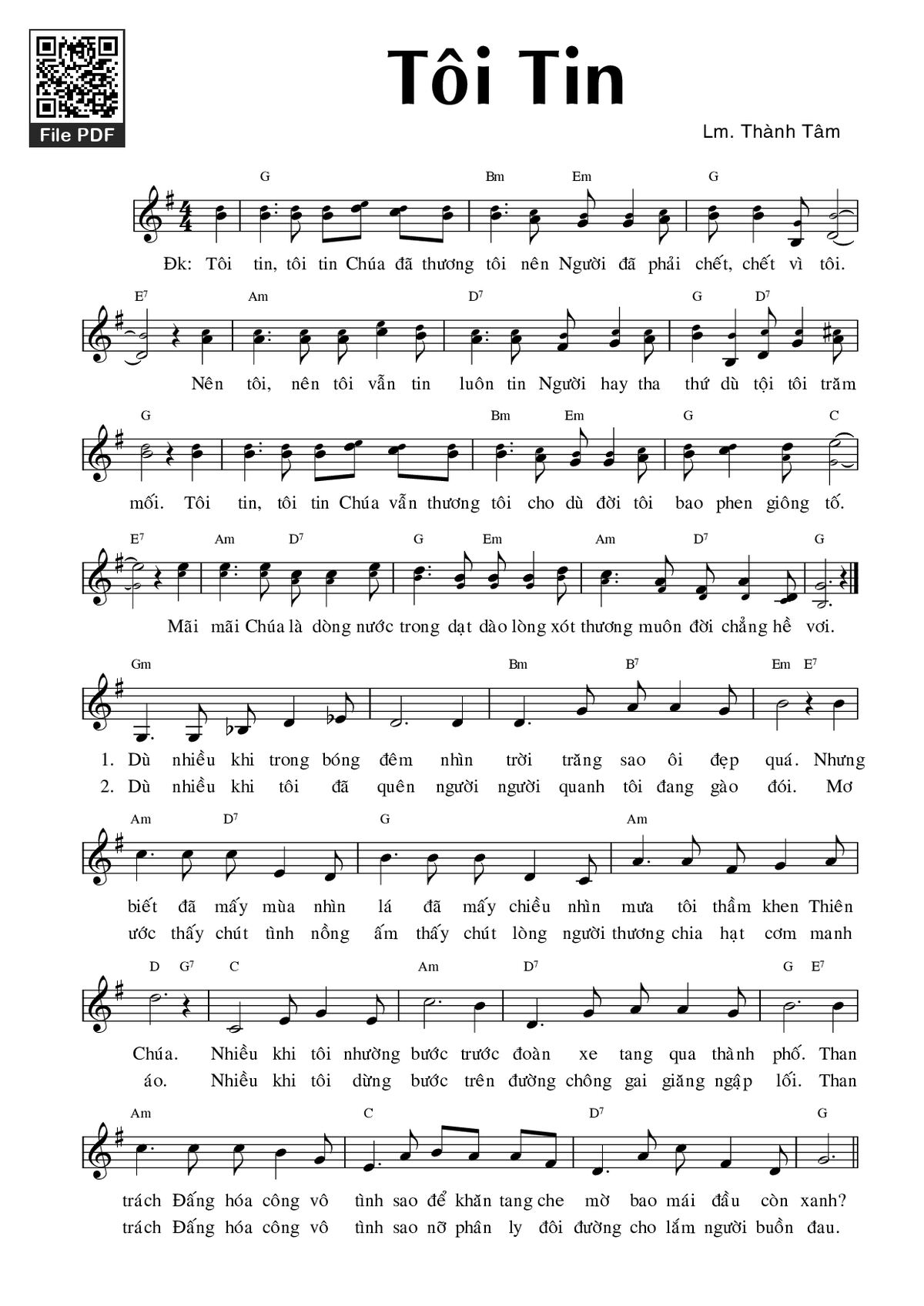 Lm. Thành Tâm Tôi tin tôi tin Chúa đã thương tôi [PDF] [Sheet] [Lyrics] [Mp4/Midi]