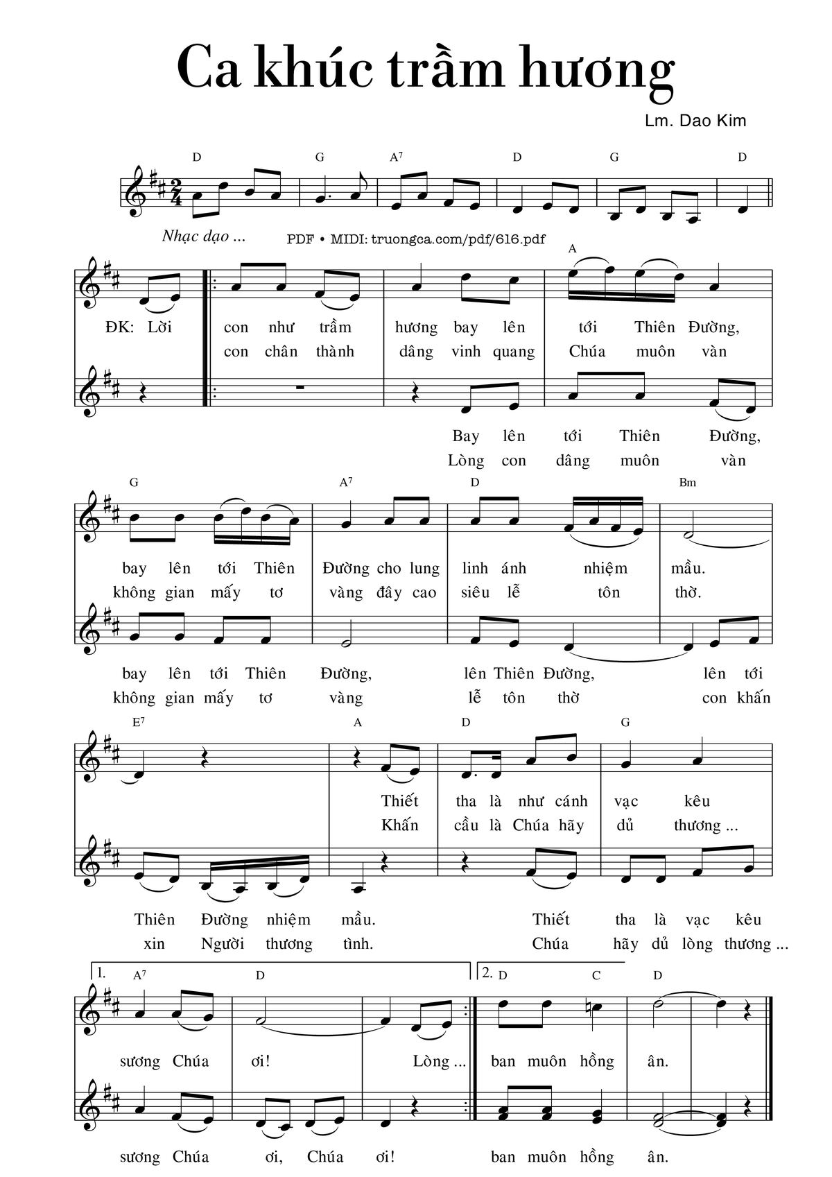 Lm. Dao Kim Lời con như trầm hương Bay lên tới thiên đường [PDF] [Sheet] [Lyrics] [Mp4/Midi]