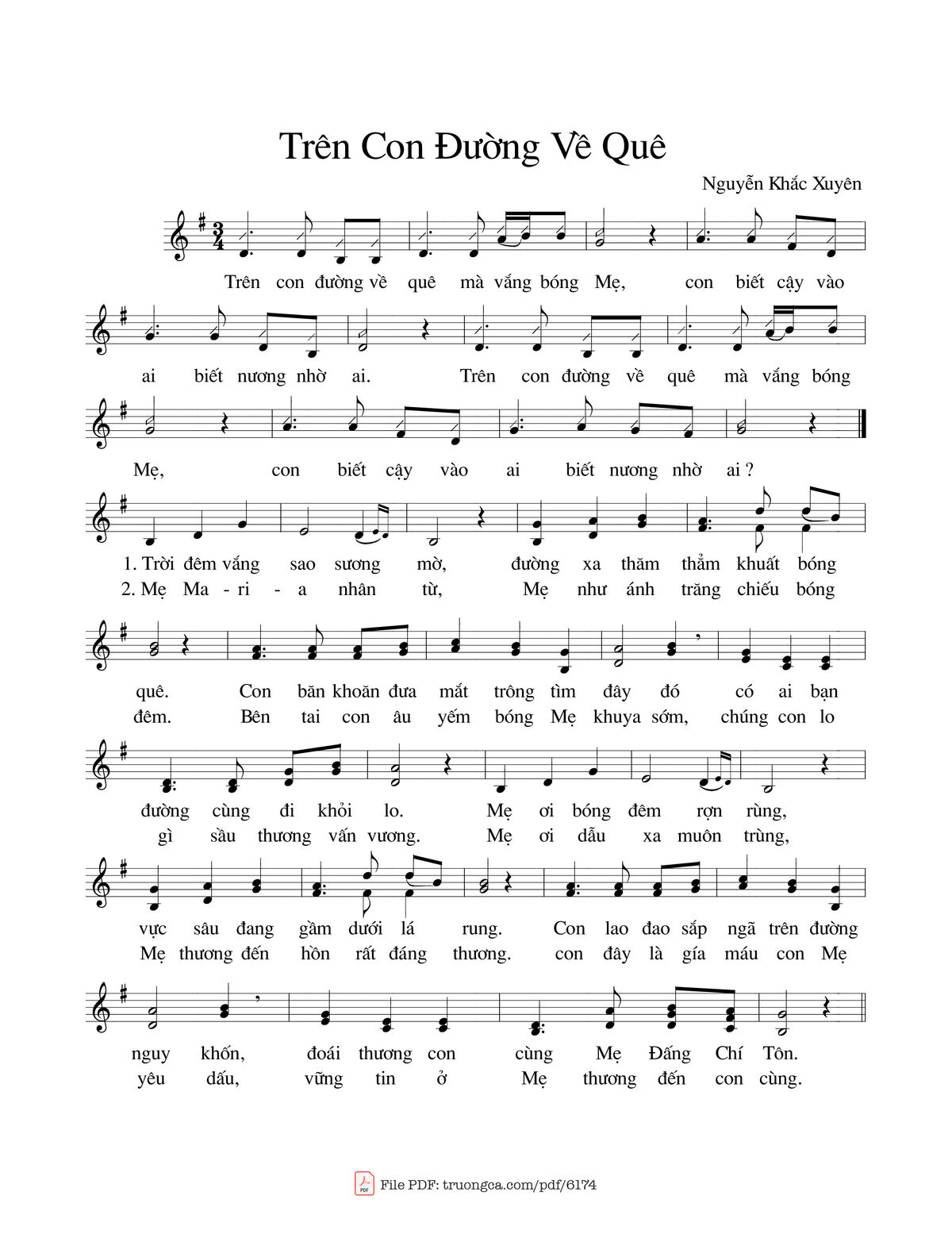 Nguyễn Khắc Xuyên Trên con đường về quê mà vắng bóng Mẹ [PDF] [Sheet] [Lyrics] [Mp4/Midi]