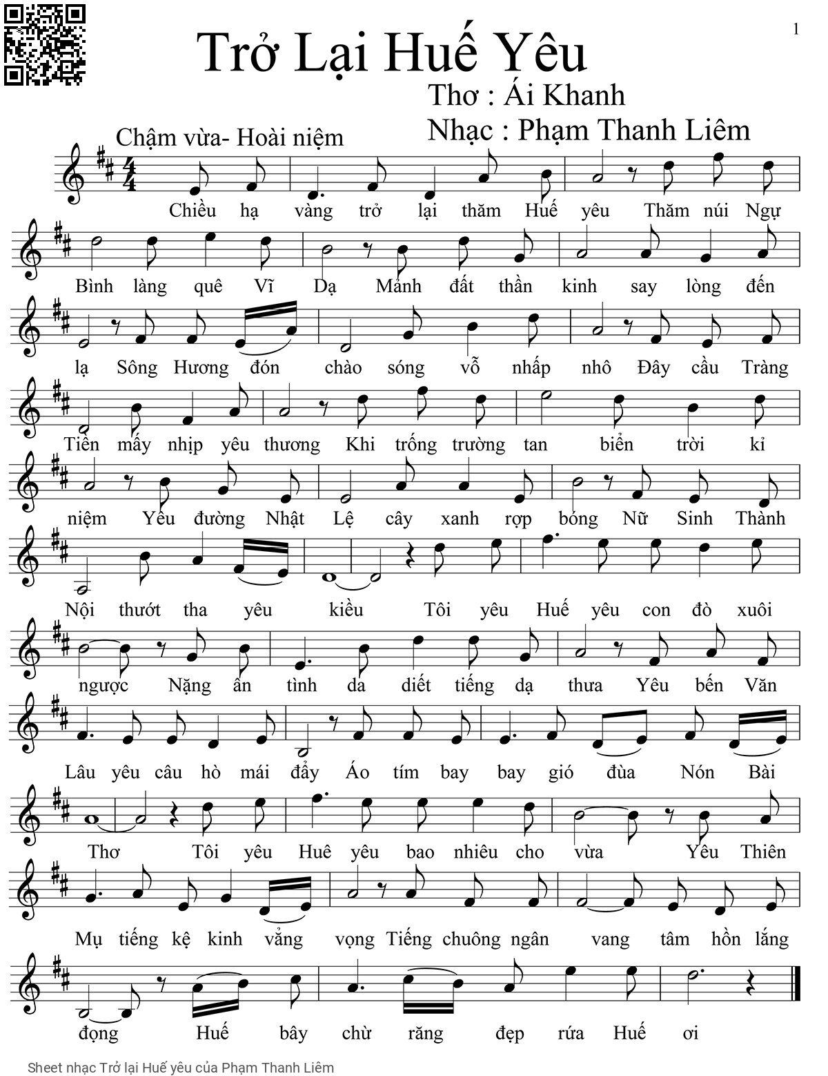 Phạm Thanh Liêm Chiều hạ vàng trở lại thăm Huế yêu Thăm núi Ngự Bình làng quê Vĩ Dạ [PDF] [Sheet] [Lyrics] [Mp4/Midi]