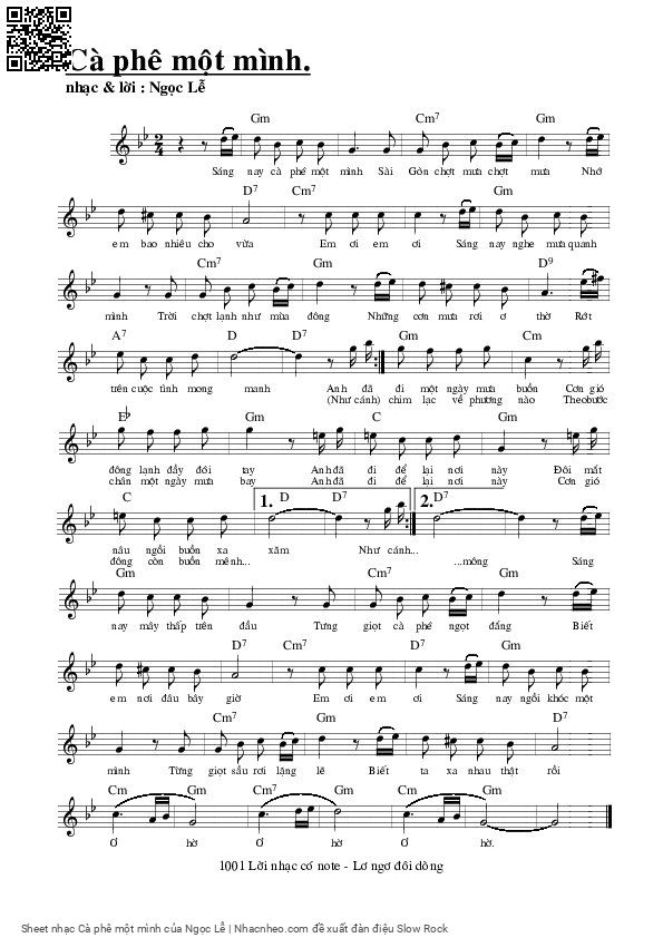 Transposition is the process of moving a song's melody and chords up or down in pitch by a constant interval. The direction of the transposition tool is indicated by a plus (+) sign for up and a minus (-) sign for down. Hover mouse over chords signs to see the chords chart of Cà phê một mình song.